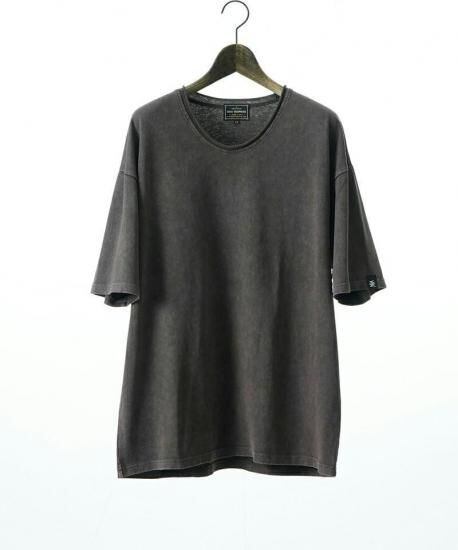 Vネックとクルーネックのバランスをとった、ネックラインのTシャツ。