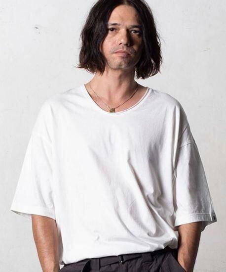 絶妙なVネックラインで仕上げたTシャツ。