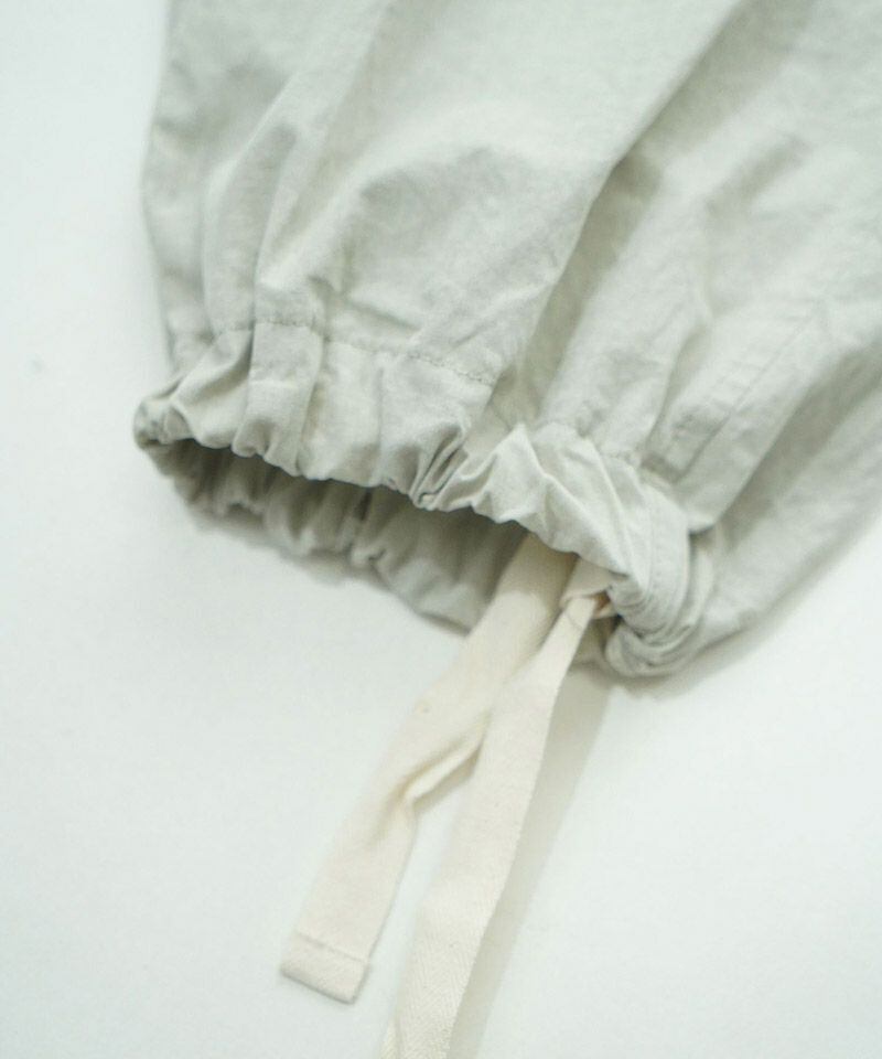 裾にはドローコードを備えているので、裾をすっきりと絞ったスタイルから、リラックスしたワイドシルエットまで、一着で複数の表情を楽しむことができ、シーンや気分に合わせた着こなしの幅を広げることもできます。