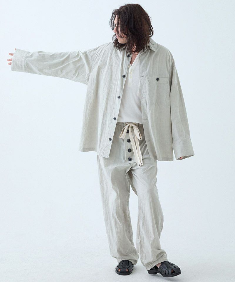 素材にはコットンラミーを採用し、適度な光沢感とワッシャー感、シャンブレー調の奥行きある色合いが特徴とし、カジュアルすぎない大人の余裕を感じさせるリラックス感を表現。