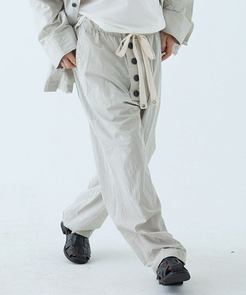 「ゆったりリラックスした盛夏から着れるセットアップ」という発想から生まれたトラウサーズパンツ。