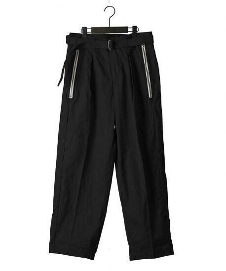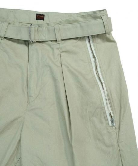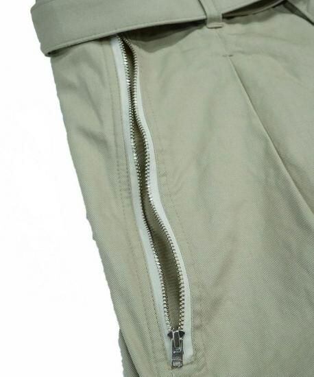 共生地で作られた長めのベルトも、このパンツのデザイン性を高める重要な要素に。