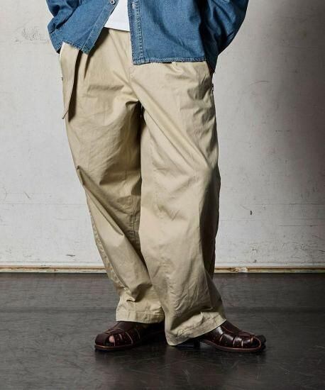 シルエットは非常にワイドでルーズに仕上げ、現代的なストリートファッションのトレンドを取り入れつつ、クラシックなチノパンの良さも残しています。