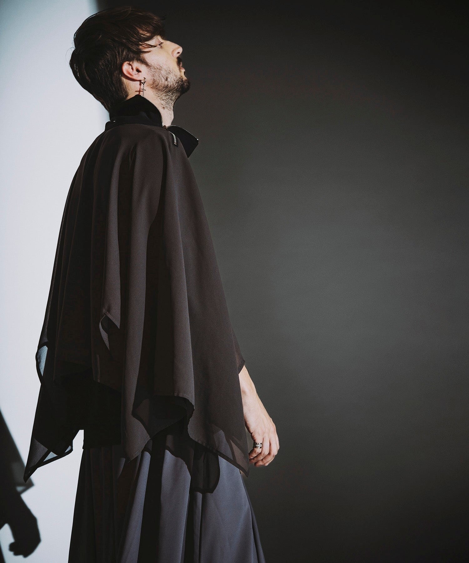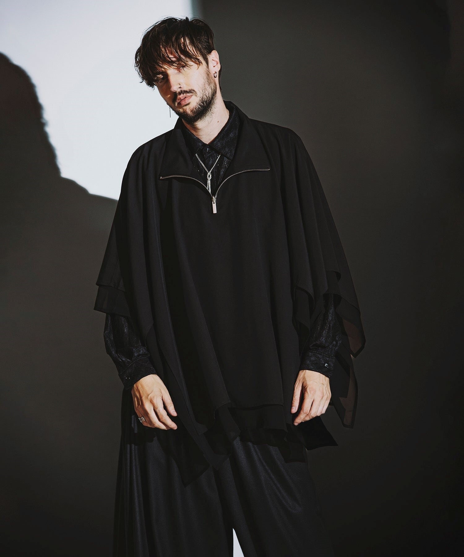 ファスナー位置を横にすると、また違ったシルエットも楽しめます。