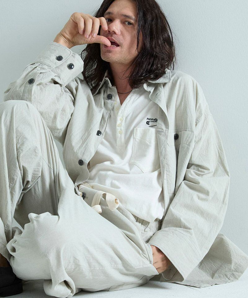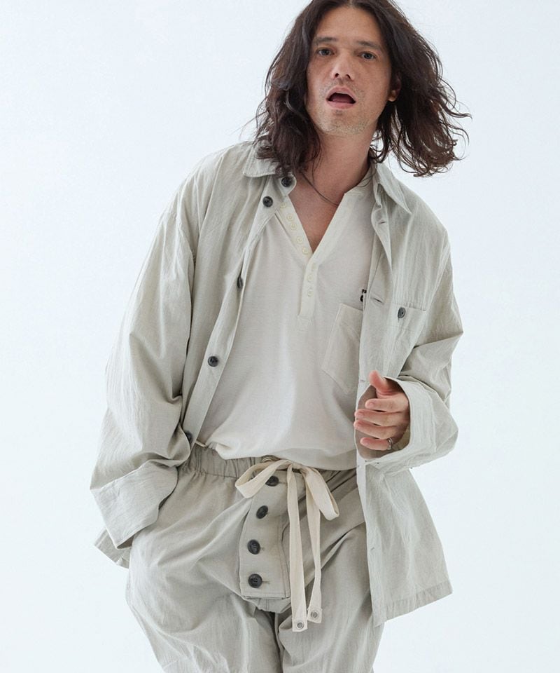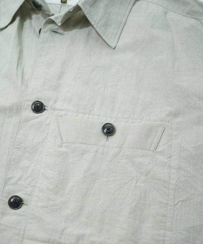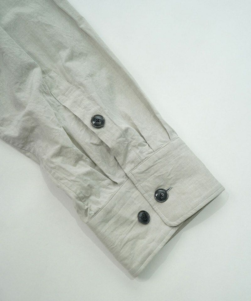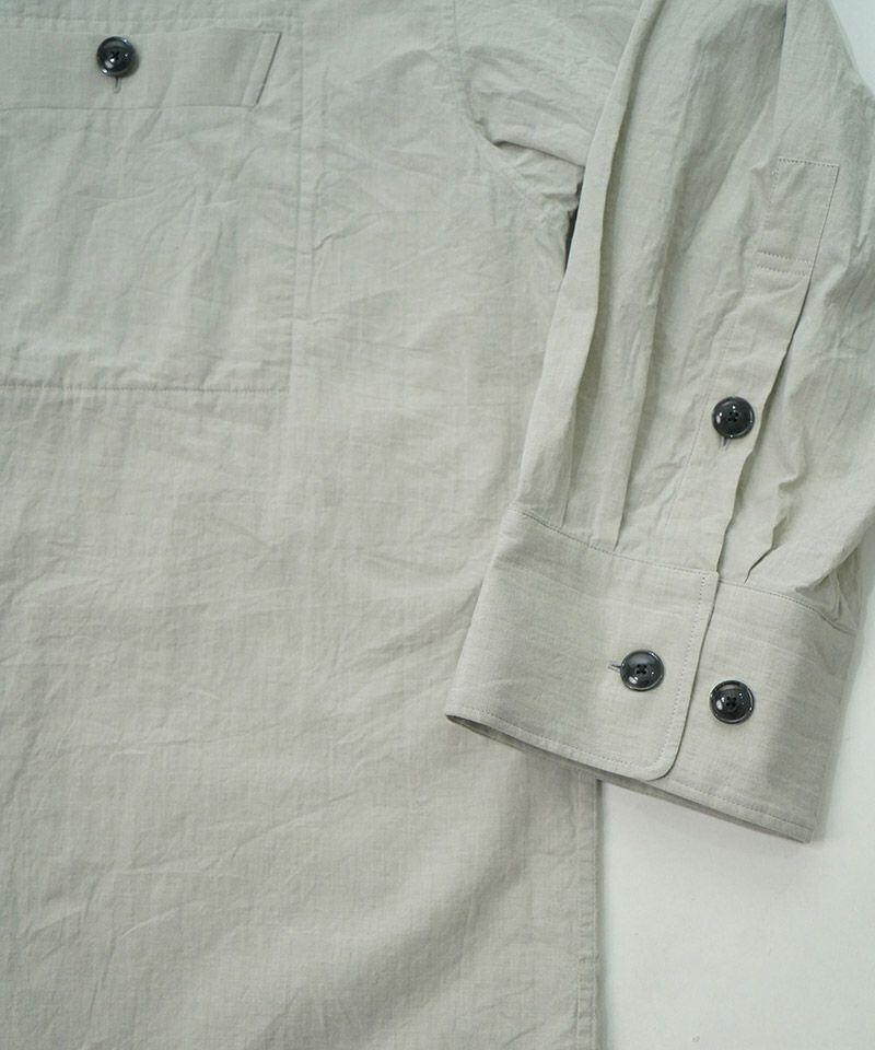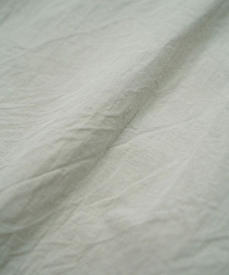 素材にはコットンラミーを使用し、適度な光沢感とワッシャー感、そしてシャンブレー調の奥行きのある色合いが特徴。