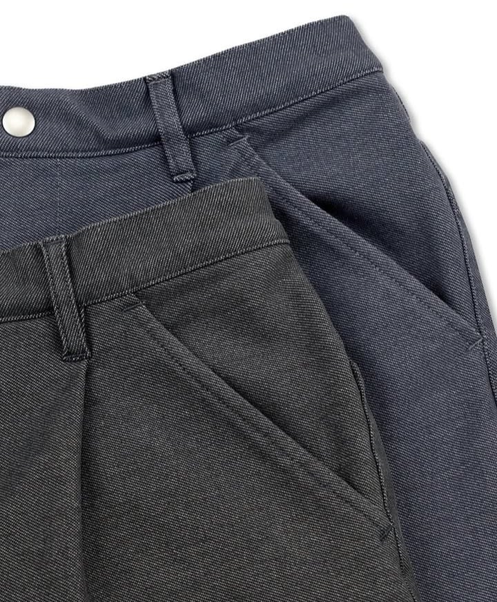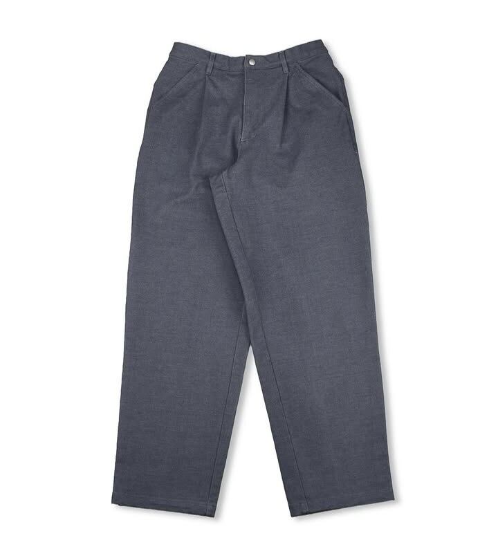 コットンブレンドでデニムライクなジャージ素材を使用し仕上げたワイドパンツ。