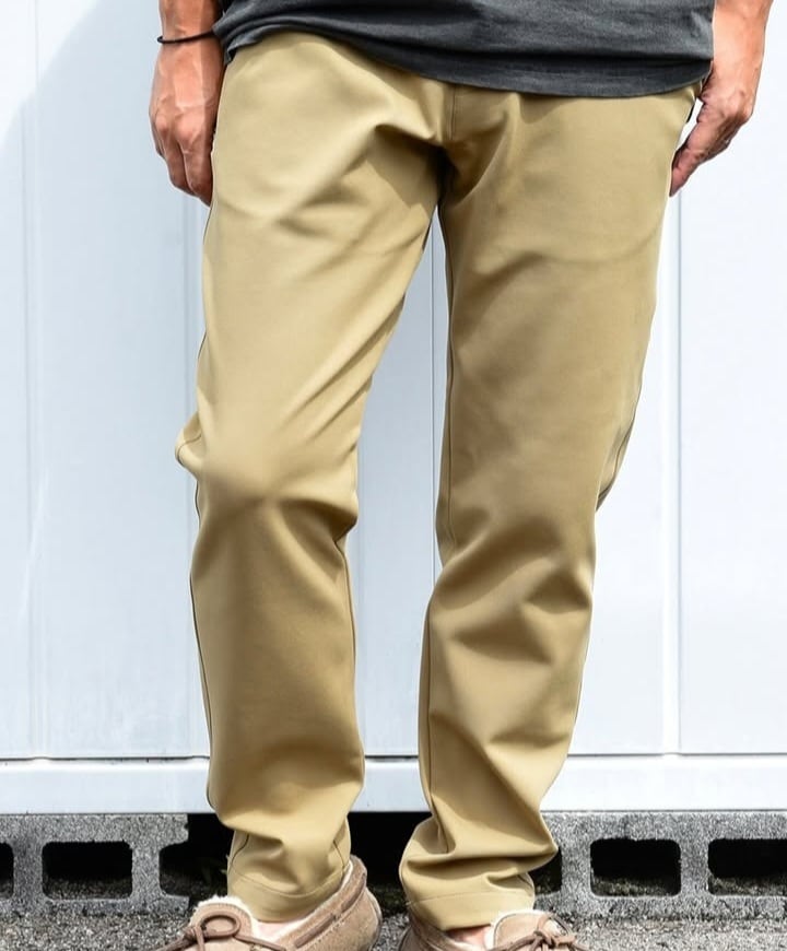 ワタリは少しゆったり、裾にかけてもテーパードに仕上げ、ゴルフやアウトドアにも最適なアイテムです。