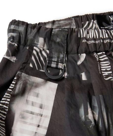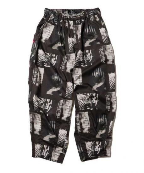 オリジナルのフォトコラージュを大胆に施した、総柄テキスタイルのイージーパンツ。