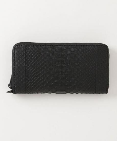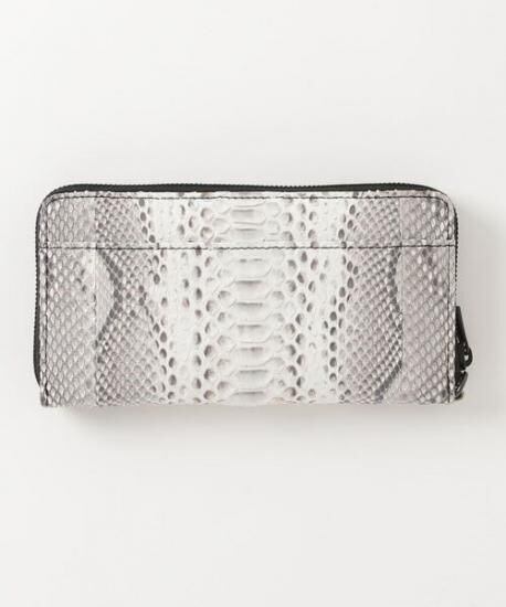 パイソンレザー特有の美しい模様が印象的な、ラウンドジップウォレット。