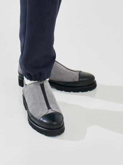 大胆なゴア使いがポイントの大人顔スリッポンです。
