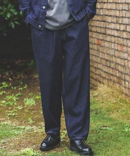 斑糸感を出しながら、8オンスの軽さで仕上げたデニム素材を使用し、縫製後に柔軟剤を使用したウォッシュ仕上げにより、柔らかく軽やかで、ストレッチ性もある抜群タッチのイージーパンツ。