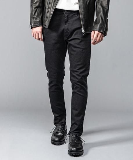 織の段階と洗い後の縮率により、ポリウレタン1%では通常なし得ない感動のスーパーストレッチを実現した、MR.OLIVE定番のスーパーストレッチデニムを使用。