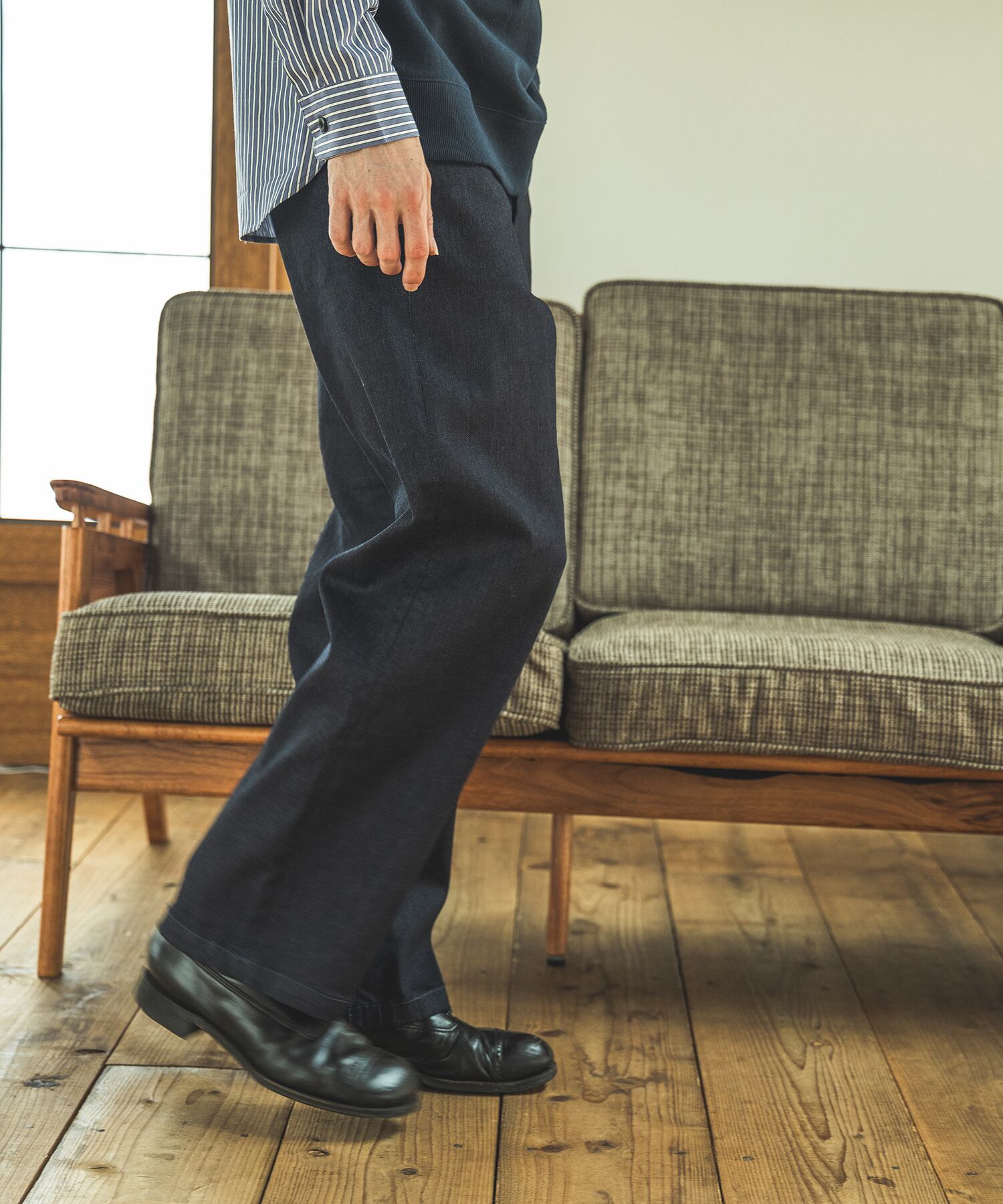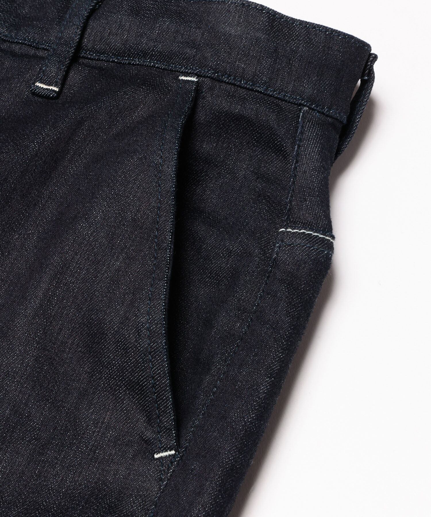 MR.OLIVE定番のスーパーストレッチデニムを使用した、ワンウォッシュワイドストレートパンツ。