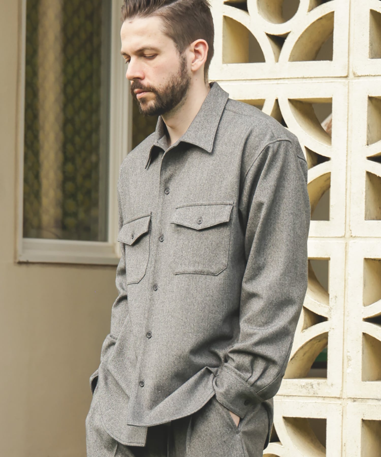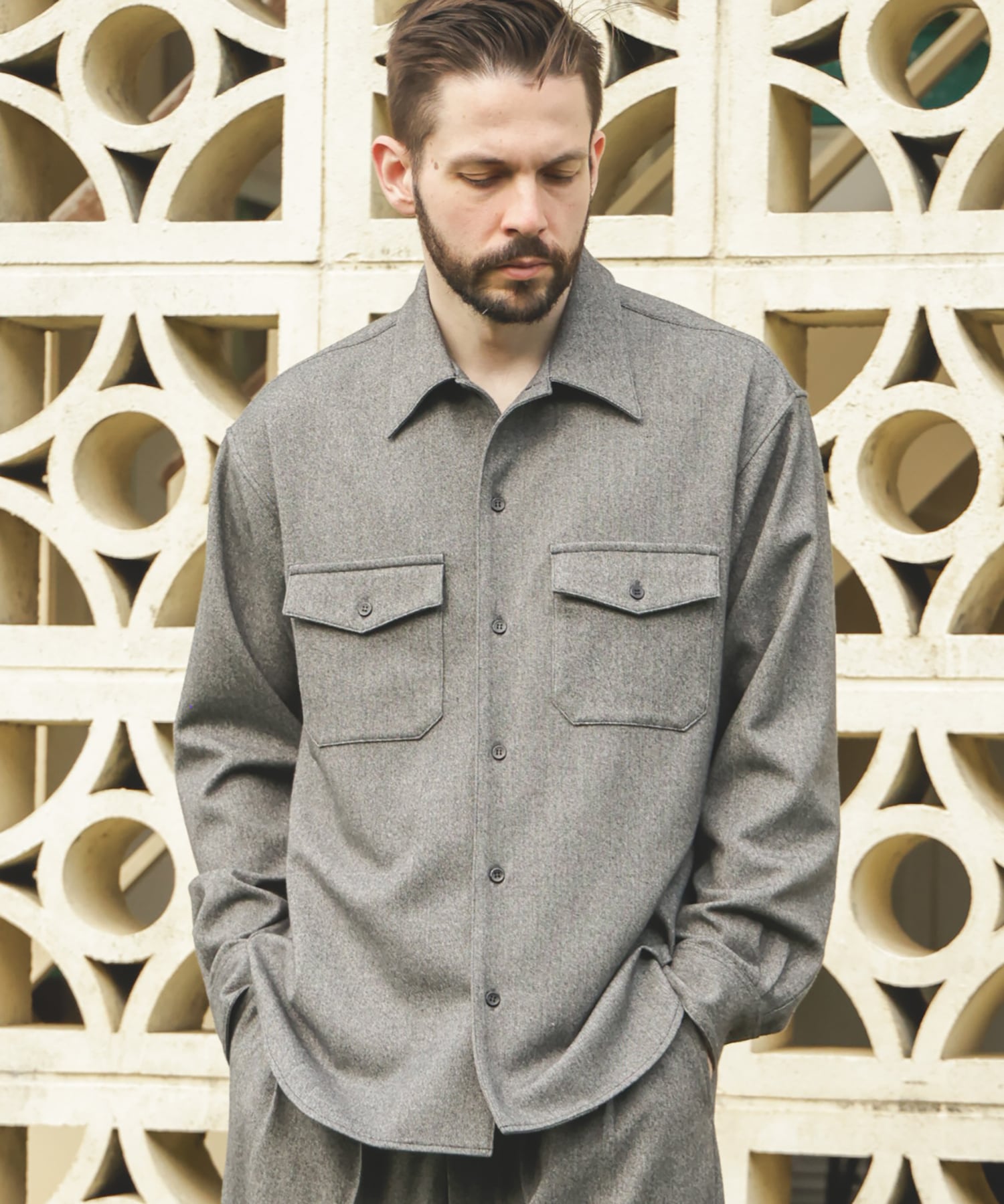 両胸にパッチアンドフラップポケットを配置し、ゆったりとしたシルエットに落とし込んだCPOシャツ。