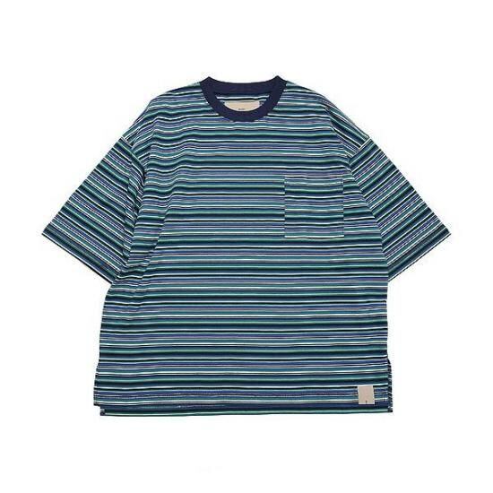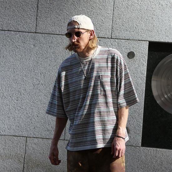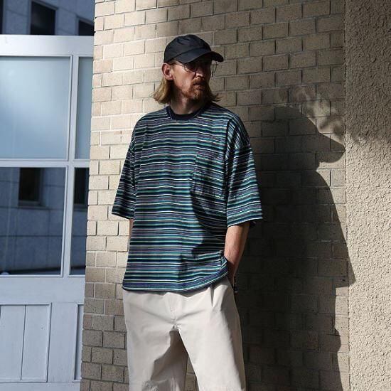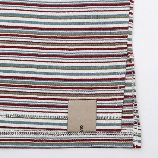 ピッチ幅の異なるラインと配色にこだわったオリジナルマルチボーダーニット生地を使用。