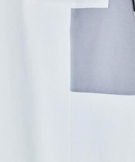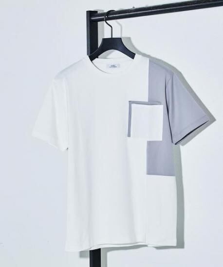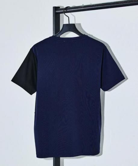 アシンメトリーな配色切り替えと、二重のパッチポケットが程良いアクセントのデザインTシャツ。