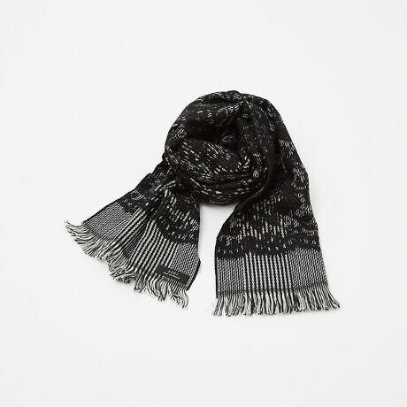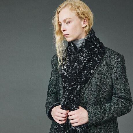 クラシックでモードなグレンチェックに、レーシーな柄をコラージュさせたエレガントでおしゃれなマフラー。