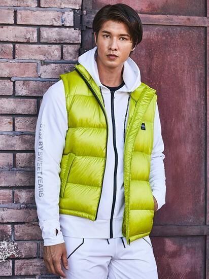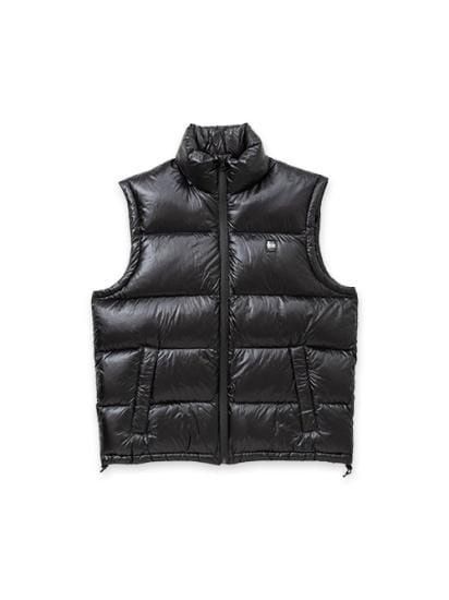独特な光沢とナイロン特有の風合いを兼ね備え、超軽量リップ素材を使用したダウンベスト。