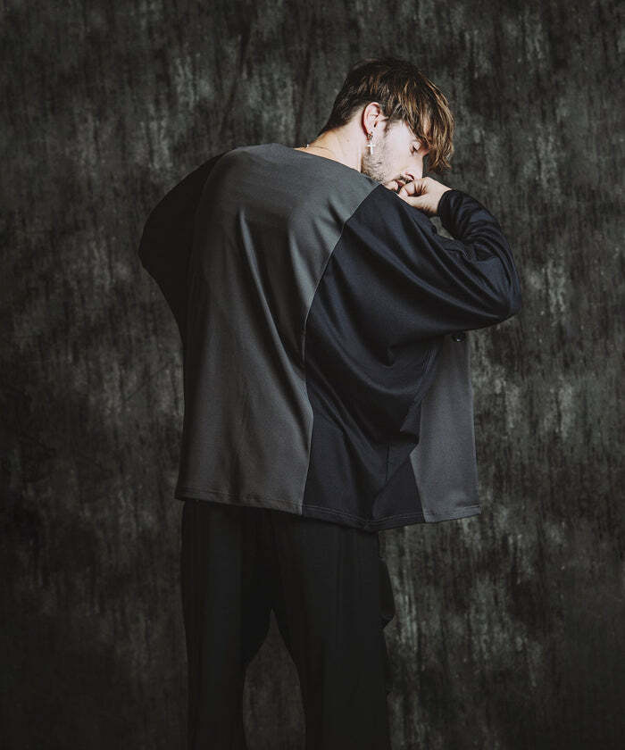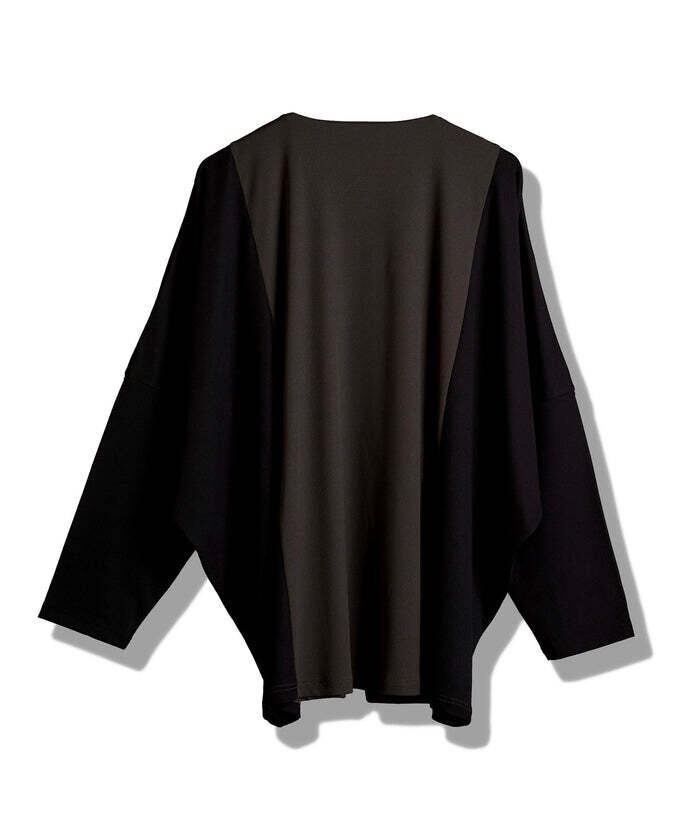 立体的な表面感の畝が特徴のテレコ素材を採用し、表情豊かな身頃のドレープが魅力のドルマンスリーブ仕様デザインに。