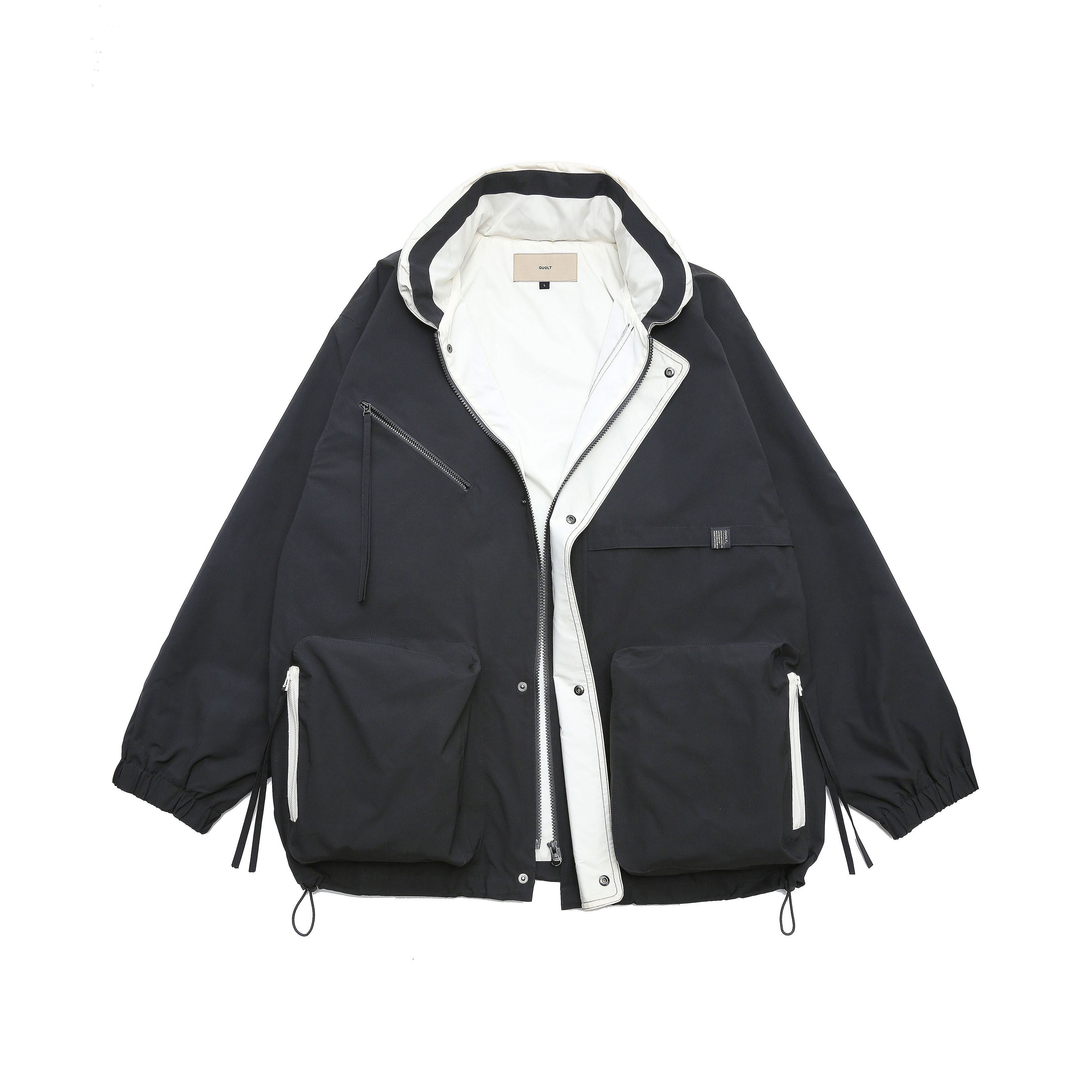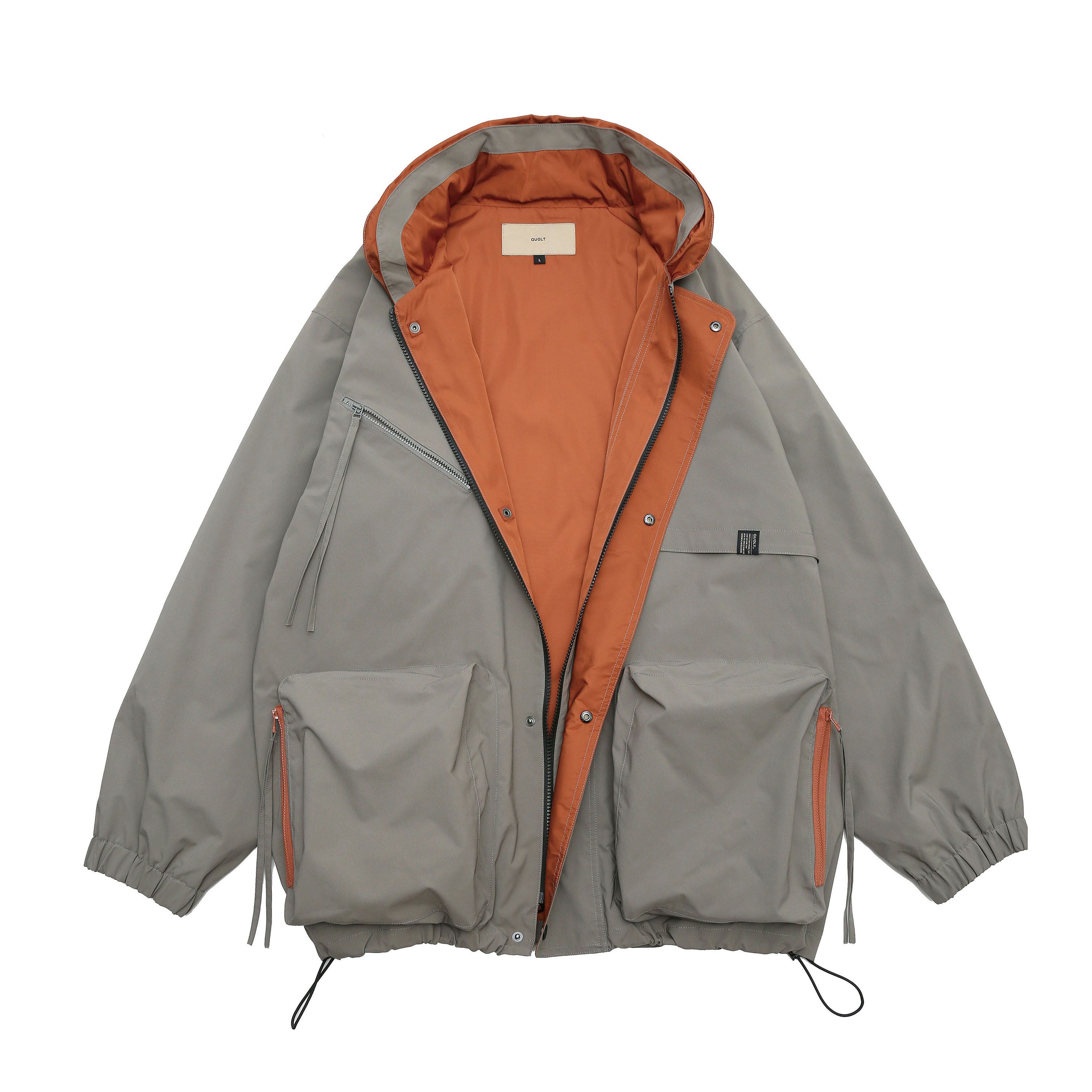 衿にはフードを内包し、裾をドローコードで絞る事も可能です。