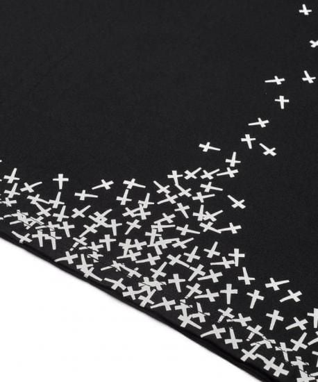 ネックからヘムラインに落ちていくクロスを表現したプリントがおしゃれ。
