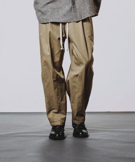 程良いアクセントとなる長めのドローコードとストレスフリーで快適な履き心地を実現するイージーなウエストリブ仕様。
