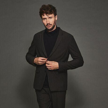 暖かみあり微起毛感が心地よく、柔らかな肌触りが特徴のTRツイード素材を使用したジャケット。