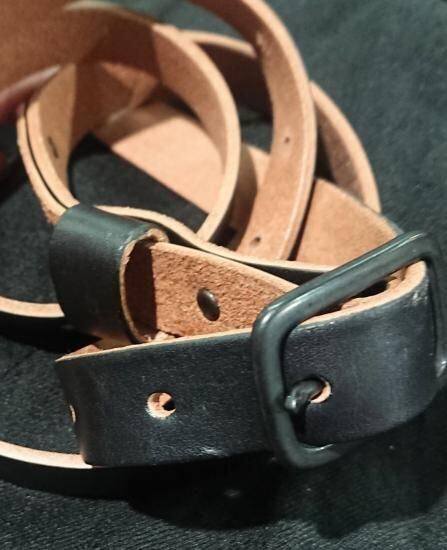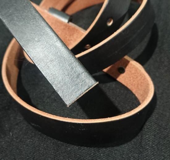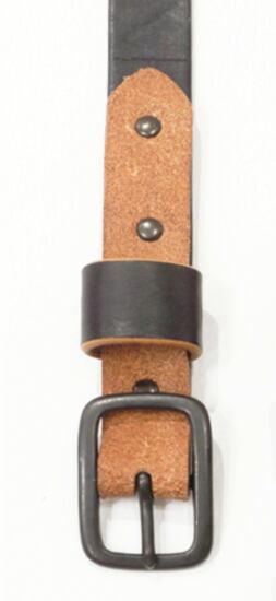 綺麗なスクエア型のバックルが付いたレザーベルト。
