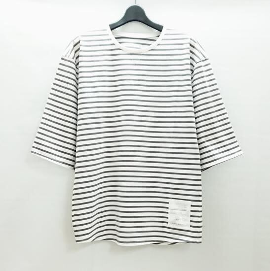しっかりとしたボーダー柄生地で仕上がった5分袖Tシャツ。
