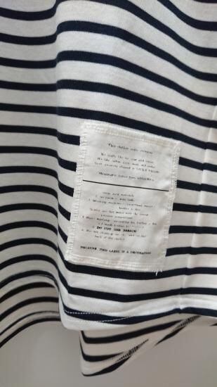 襟元には可愛らしいハンドステッチデザイン、裾にはデザインタグ。