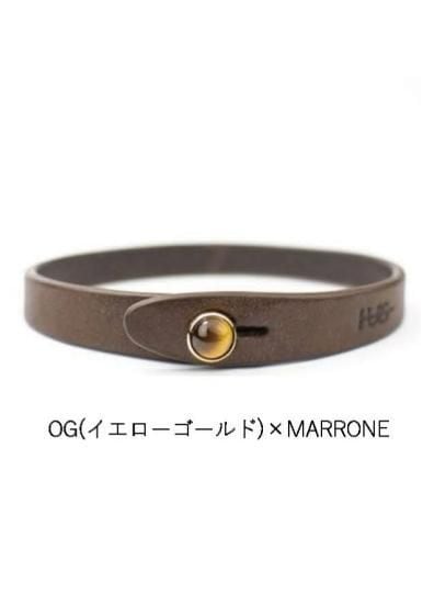 石座になるホワイトゴールドやイエローゴールドが天然石を輝かせ、肌のように馴染むレザーとの相性も抜群なアイテムです。