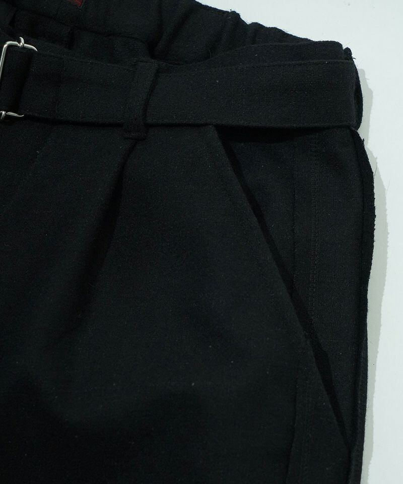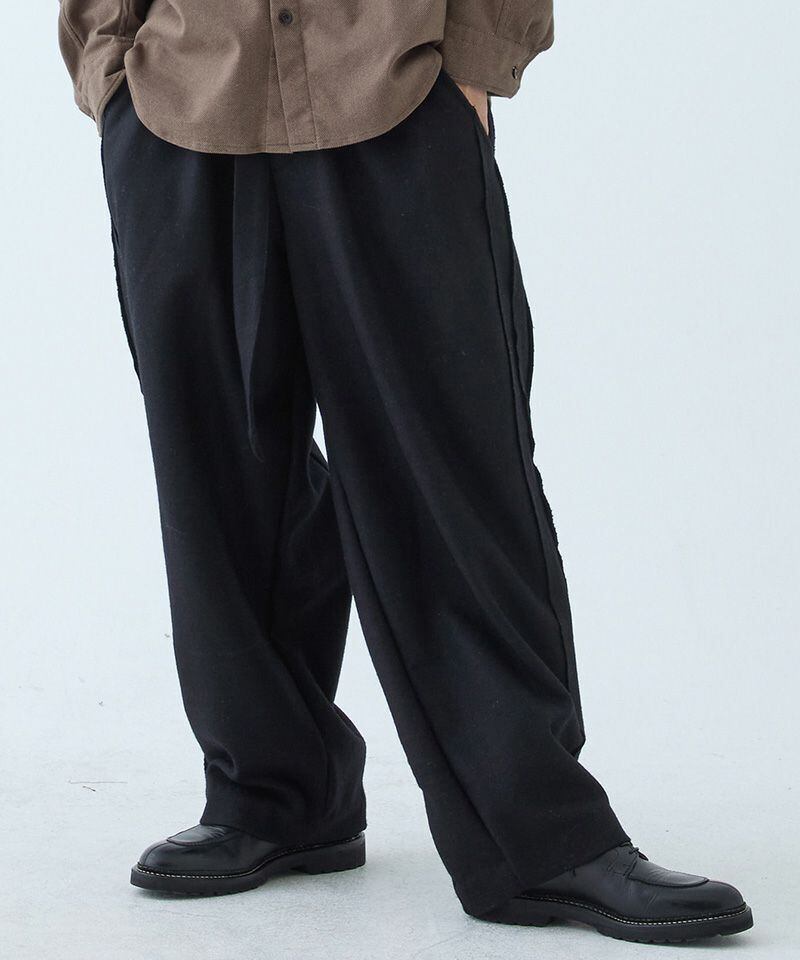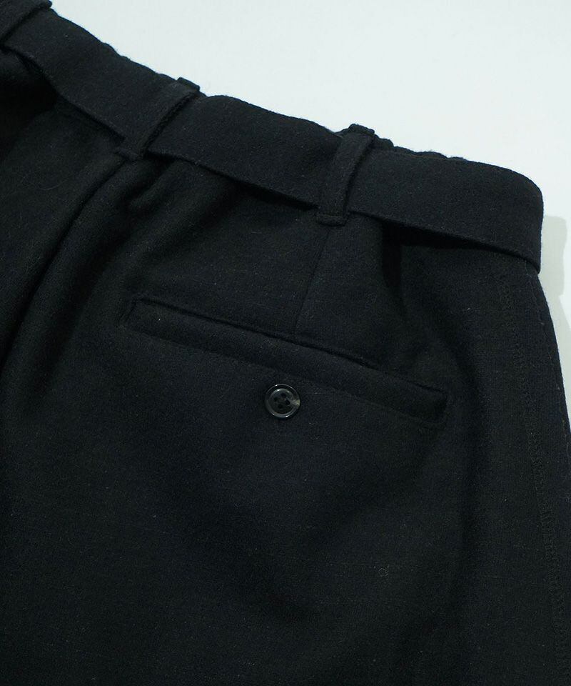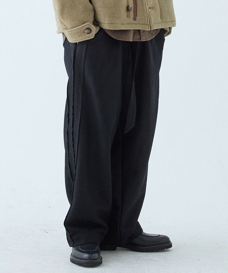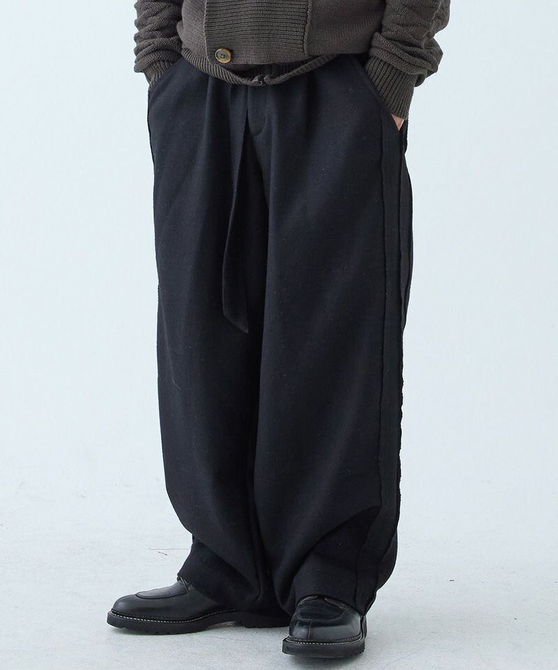 通常トラウザーズとしてあまり使用することのない質感のウールを使用し、粗野でスポーティーな要素を持つデザインを、クラシックでフォーマルな雰囲気へと昇華。