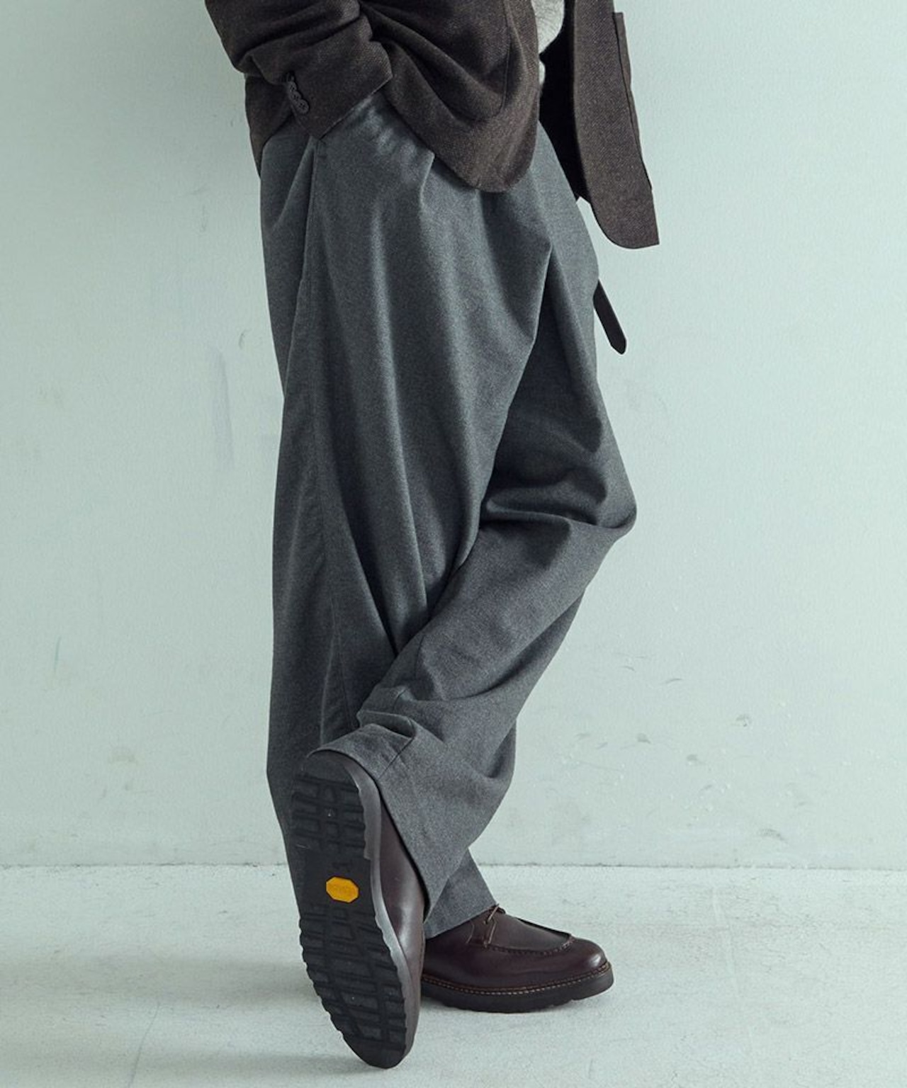 春夏シーズンに大好評を博したトラウザーズの進化系として、秋冬の装いに対応すべく生まれた1着。