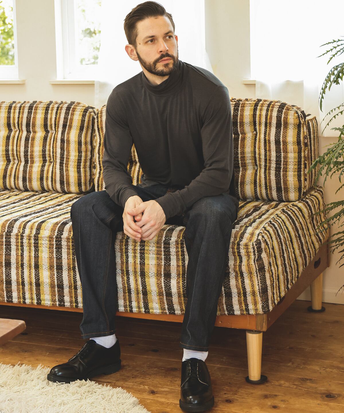 サイズ感はジャストサイズに設定し、シャツなどのインナータートルとして便利なアイテムです。