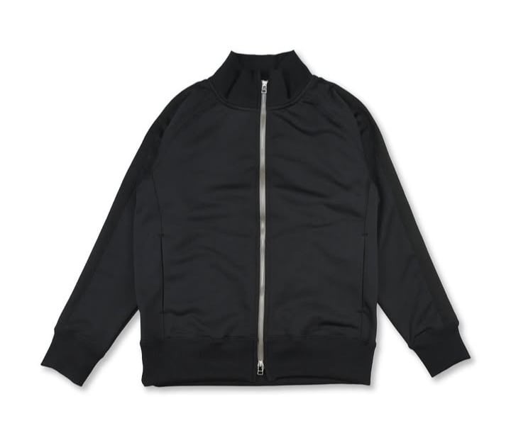 袖には異素材配色テープ、フロントも配色ジップで仕上げたおしゃれなトラックジャケットです。