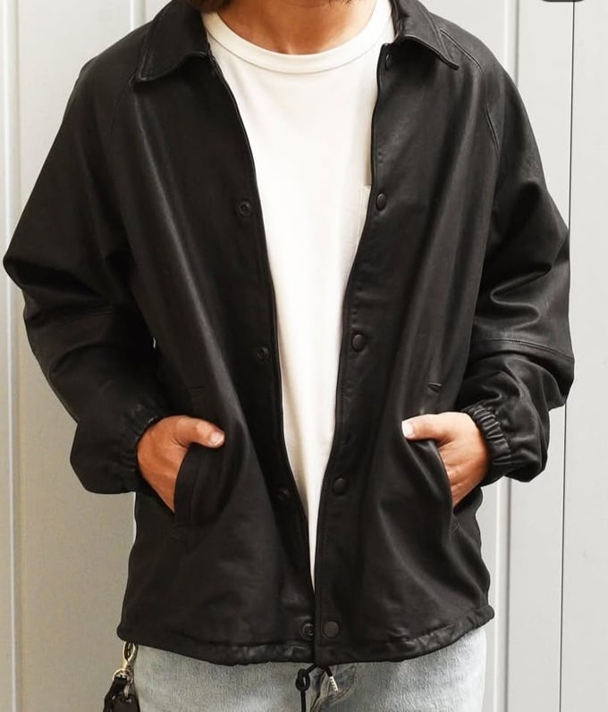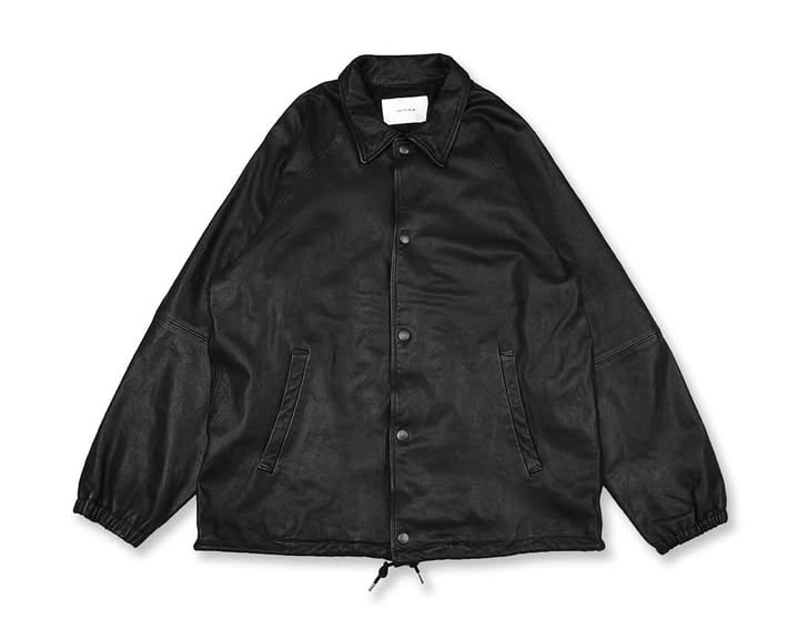 クロム鞣しとベジタブルタンニン鞣しを組み合わせた鞣し方法で仕上がった、レザーコーチジャケット。
