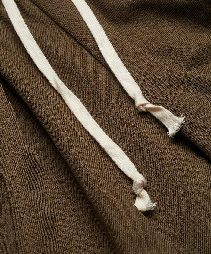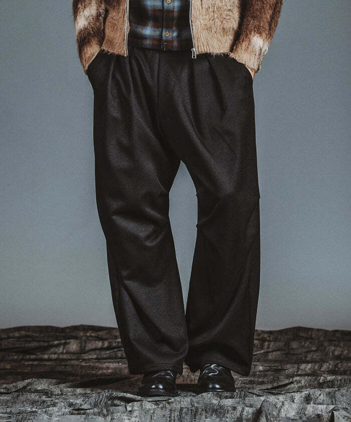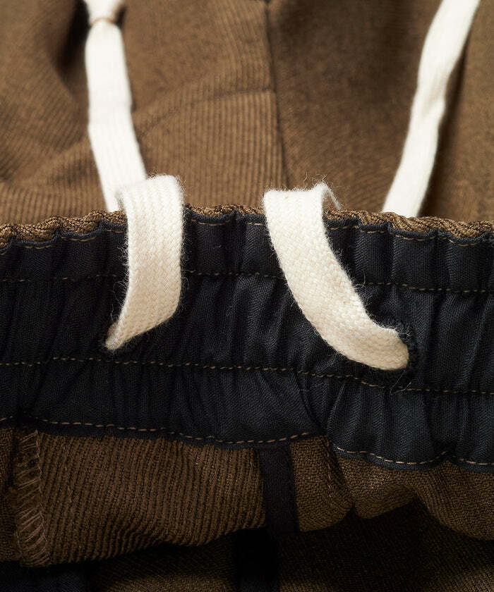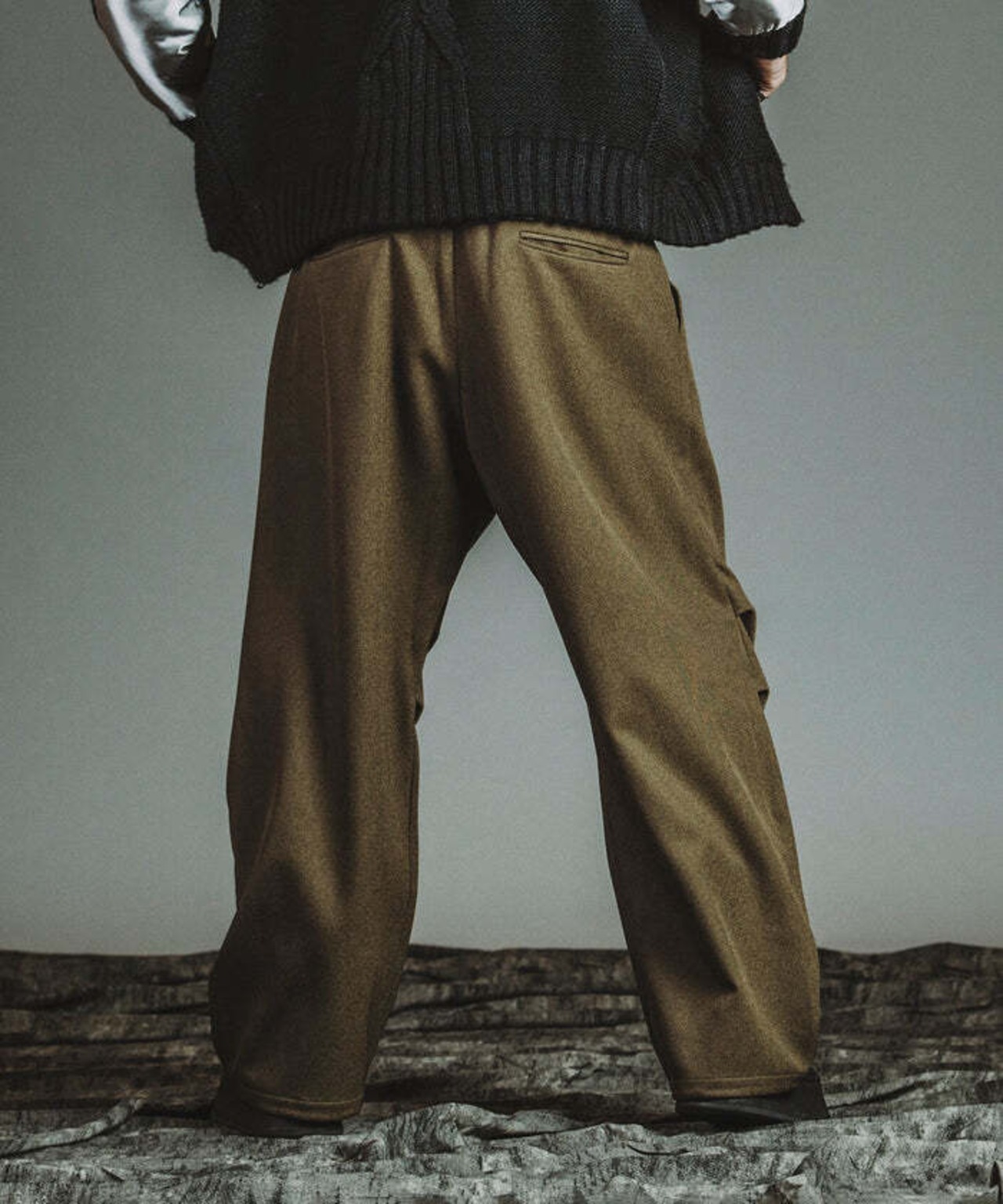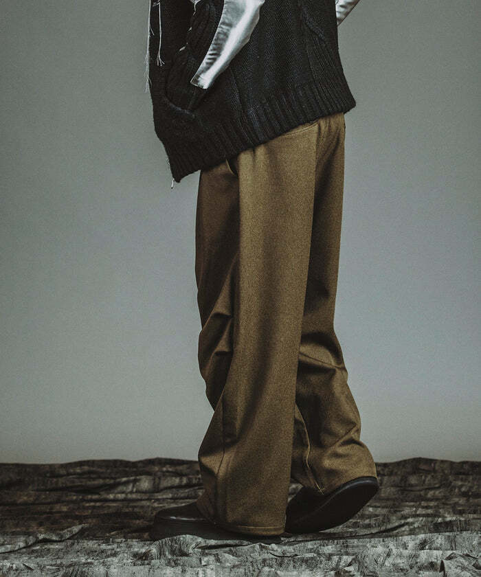 立体的なツイル織で、奥行きのある表情が魅力的な可変式ワイドトラウザーズ。