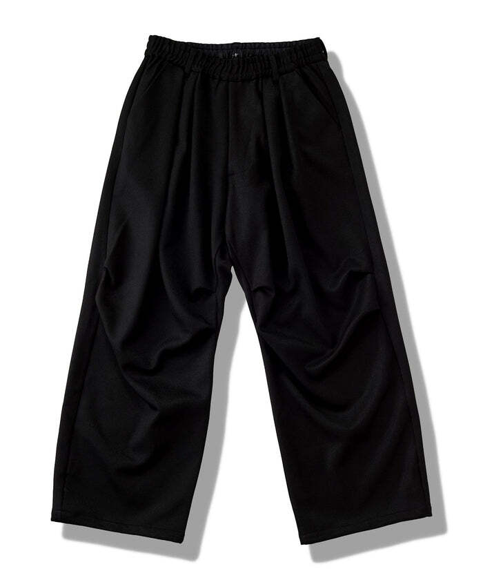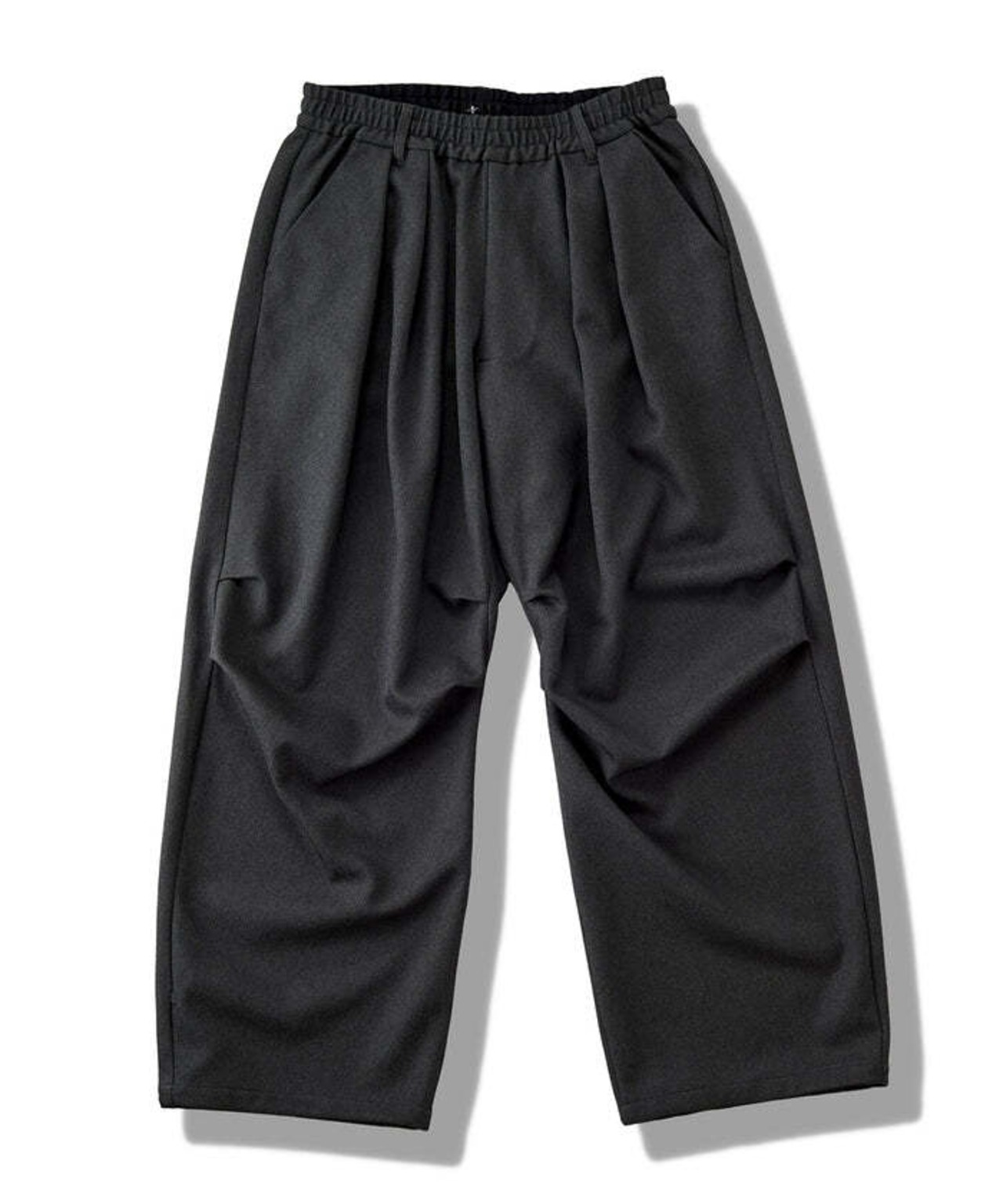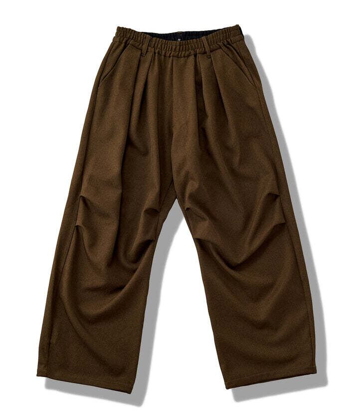 両膝にはタックを2箇所設け、ふっくらと丸みのあるシルエットを構築した、おしゃれなツータックイージーパラシュートトラウザーズです。
