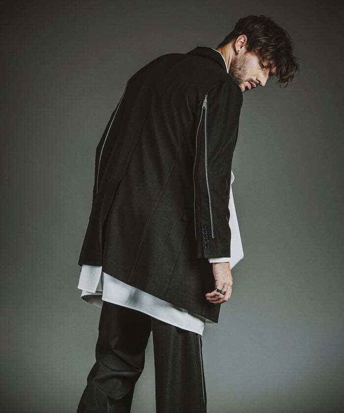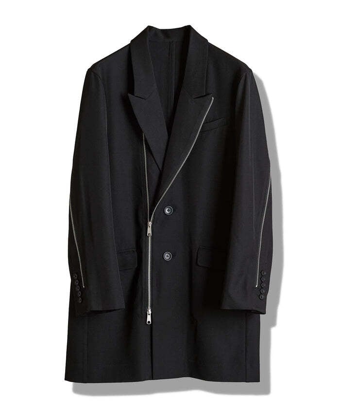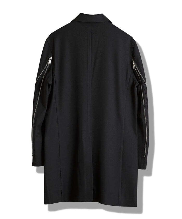 チェスターコートのオーセンティックな表情をベースに、ライダースジャケットのエッセンスを取り入れた新感覚のジャケット。