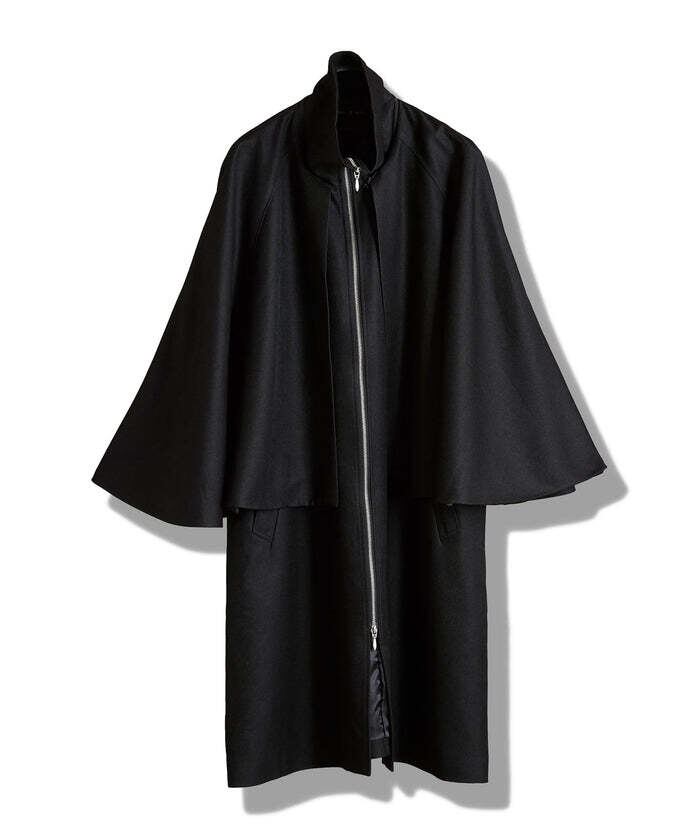 ハイカラーベストの上にケープを纏った2way仕様のインバネスコート。