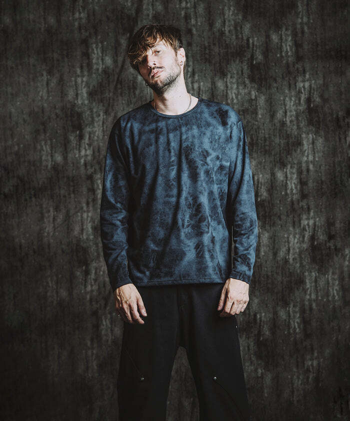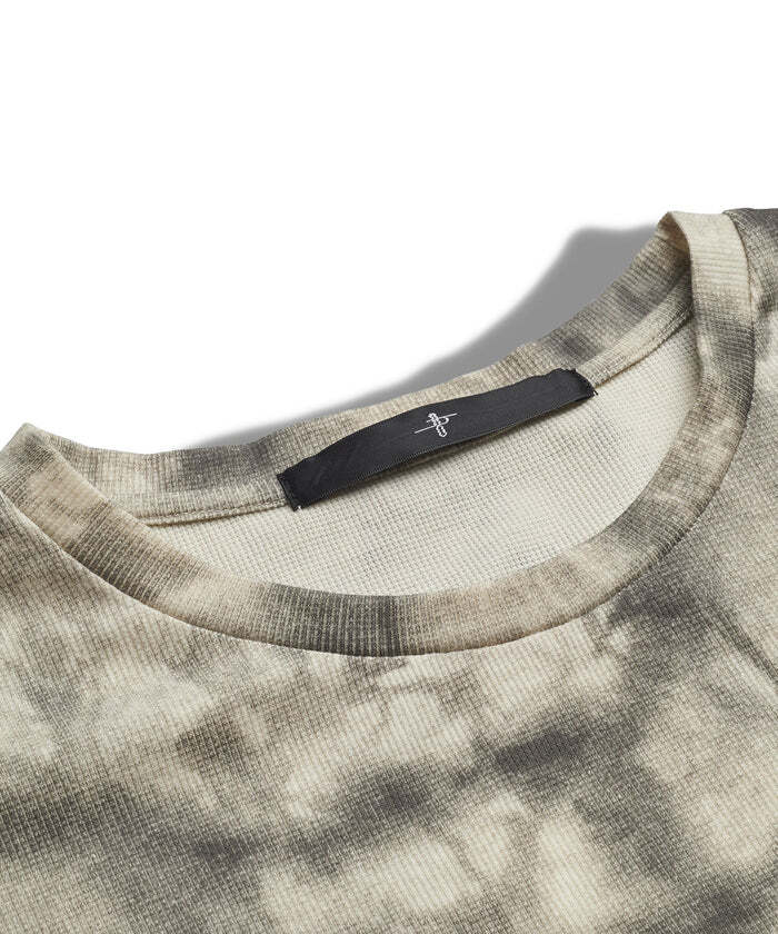 サーマル生地とムラ染めプリントによる、表情豊かなプルオーバー