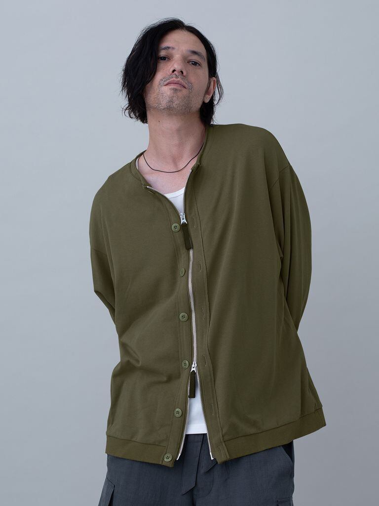 ミリタリーライナーのディテールからインスピレーションを得た、スウェットのような快適さを併せ持つカーディガン。