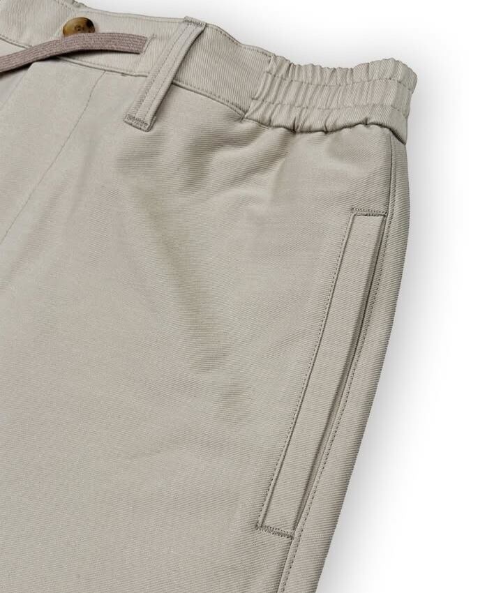 快適なストレッチ性と膝抜けを防ぐキックバック性に優れた、 HYPER FITのツイルジャージ素材を使用した、イージーパンツ。