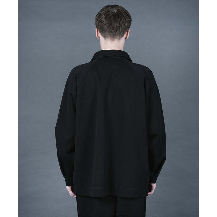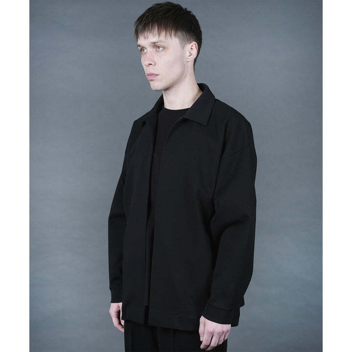 袖はスプリット袖、袖口には大きくタックを取った、ゆったりとしたボタンレスジャケット。