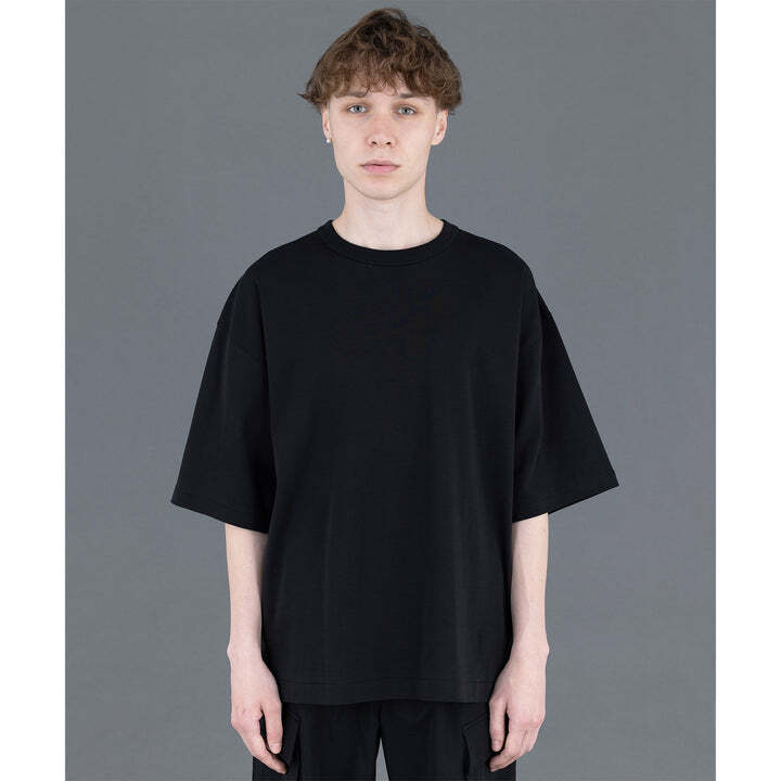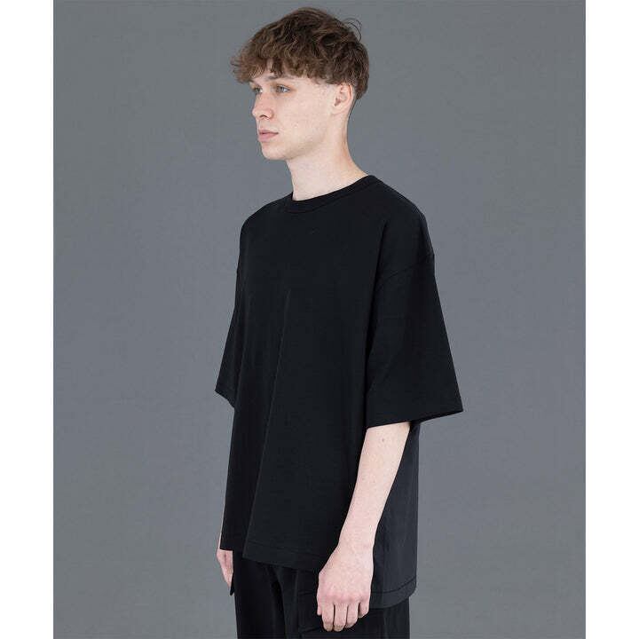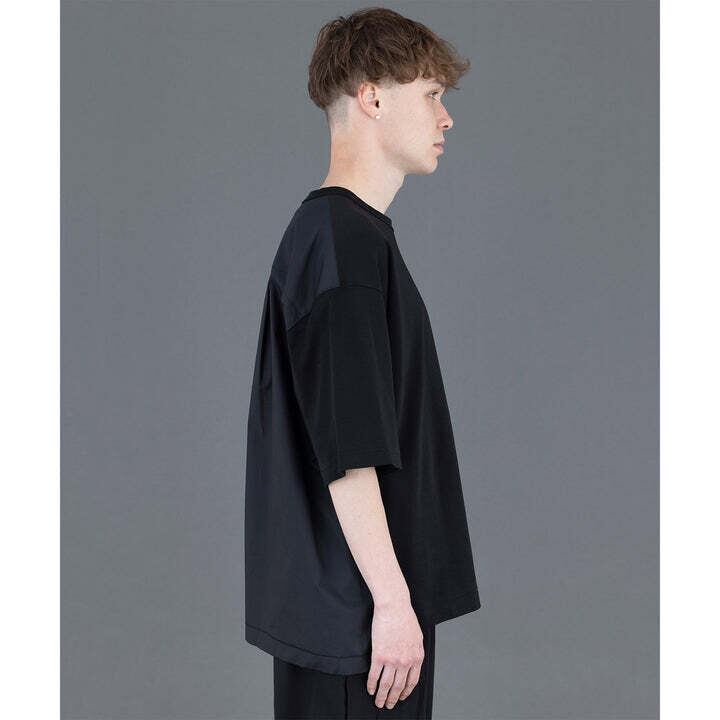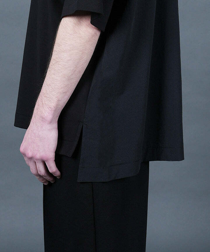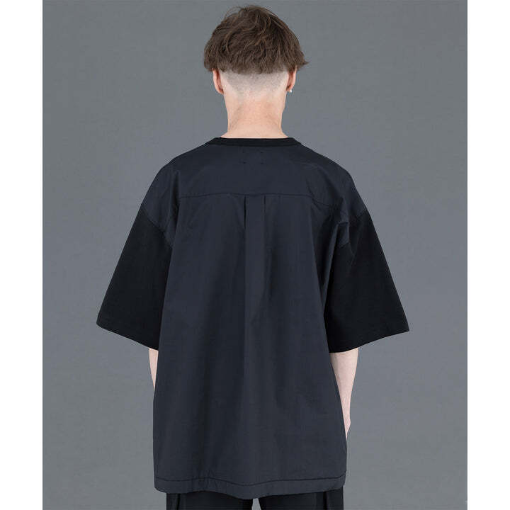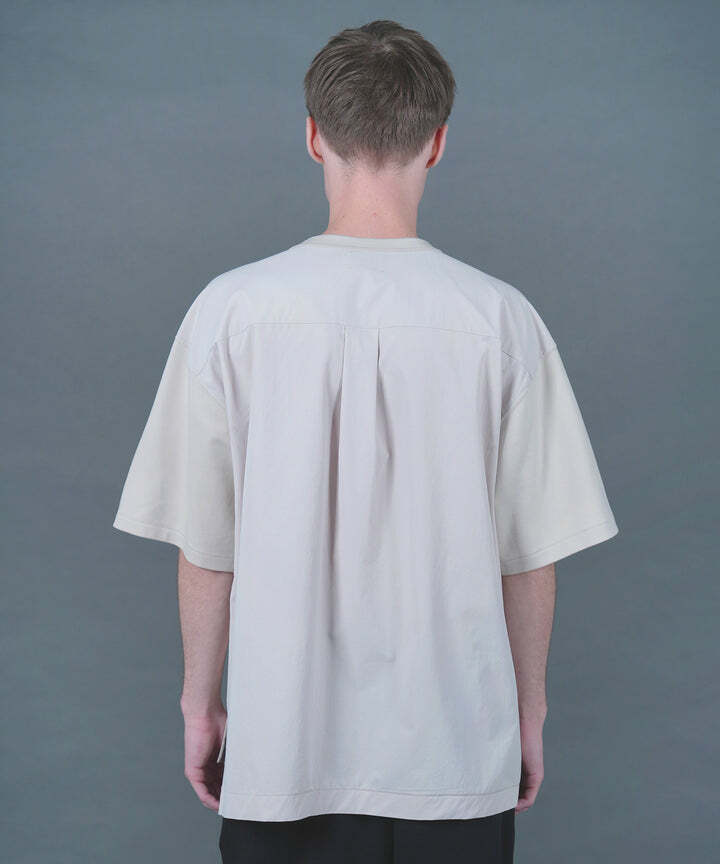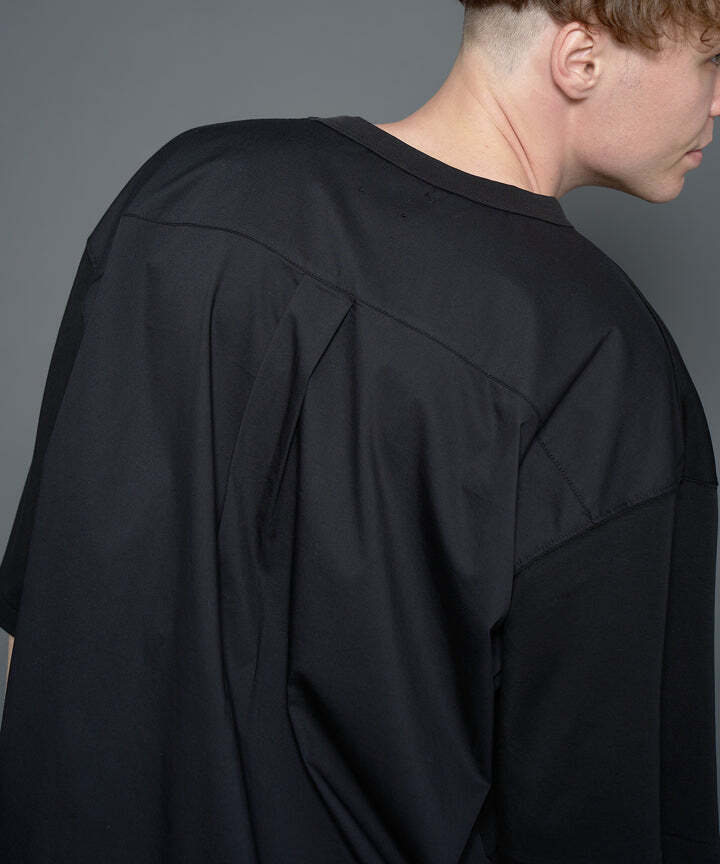 前身頃と袖にはカットソー生地、後ろはシャツ生地仕様になっており、一枚でも存在感のあるTシャツ。