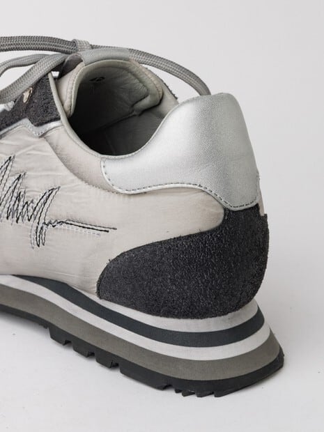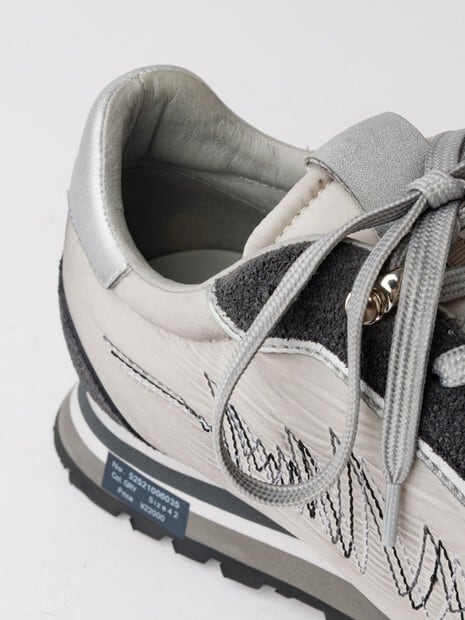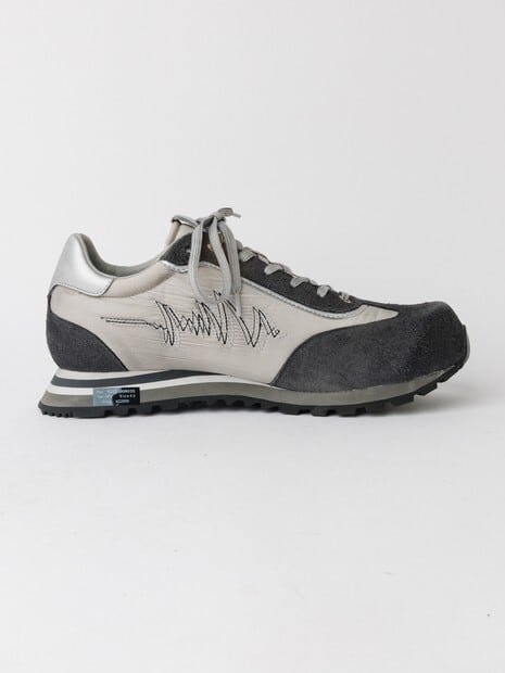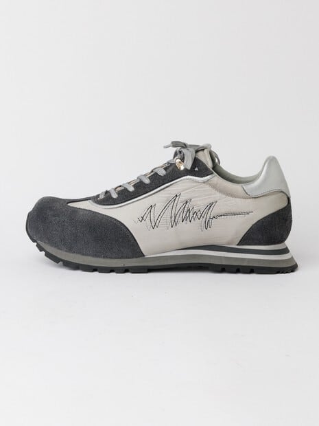 ヴィンテージのランニングシューズをデザインソースに、つま先の形状にも拘ったオリジナルラストを使用した、レトロ感とハイテク感を併せ持つスニーカー。