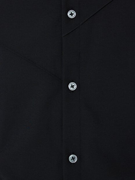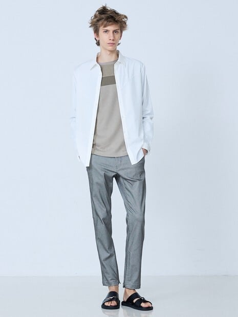 シワになりにくく、速乾性の高いポリエステルストレッチ素材を使用し、春夏にピッタリな一着。