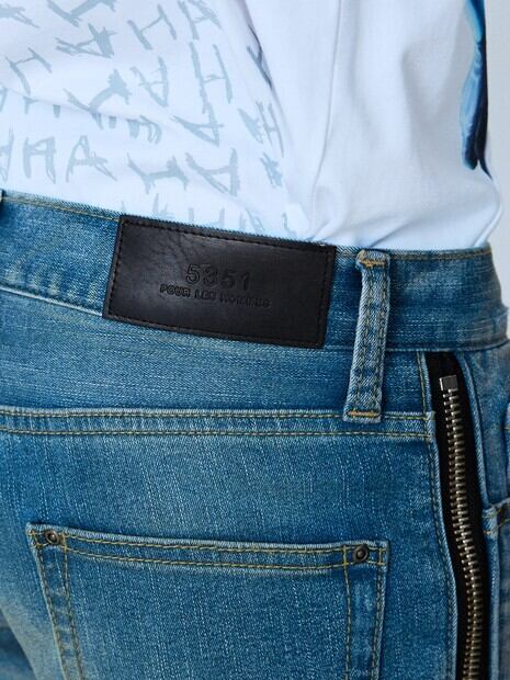 存在感ある両サイドのメタルジップデザインデニムパンツ。