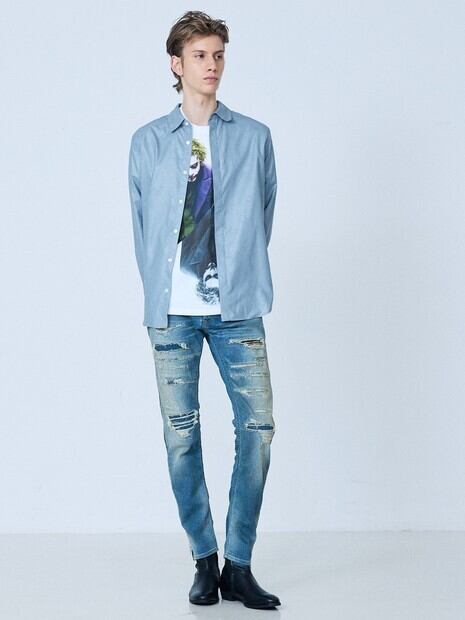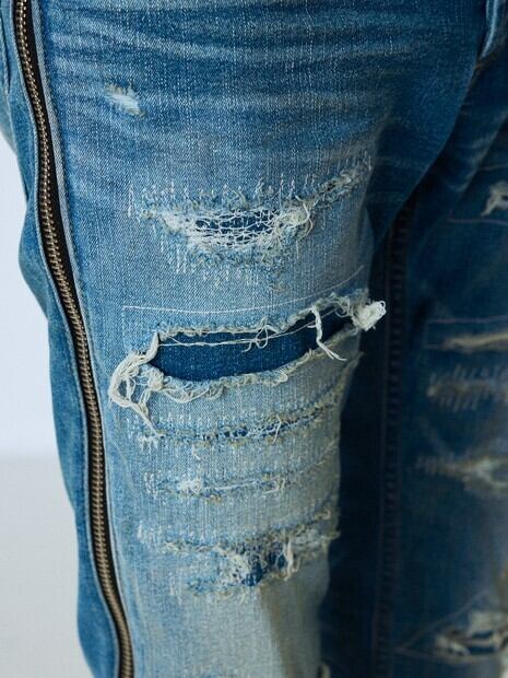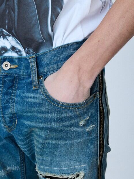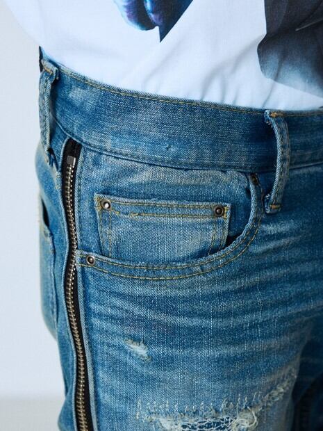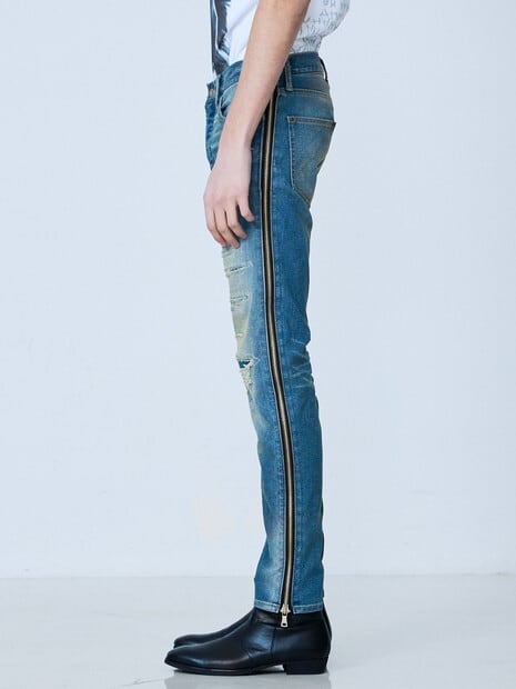 [5351POUR LES HOMMES] サイドジップダメージスキニー デニム / 02520050051