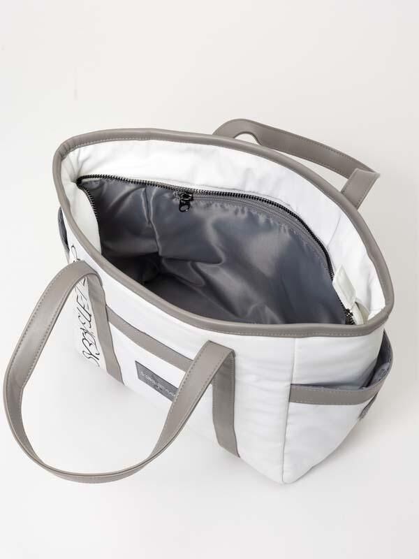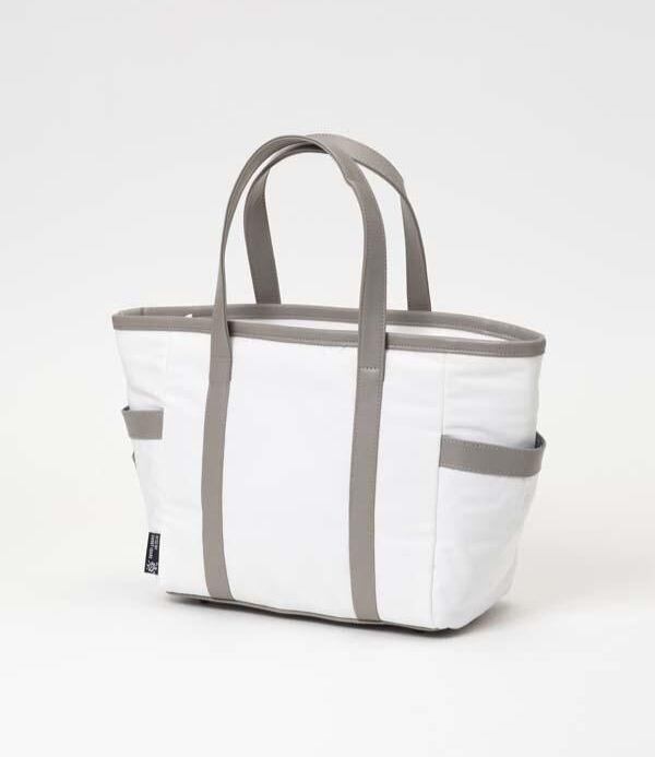 ベーシックなボディに合皮をアクセントに加えた、シンプルながら高級感のあるカートバッグ。